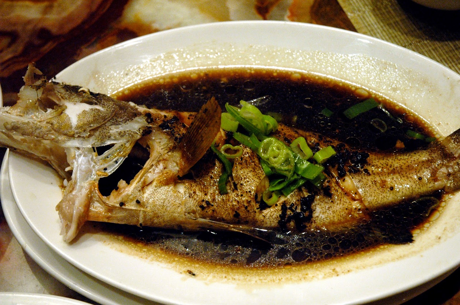Traditional fish dishes like the Sweet and Sour Singaporean Sea Bass topped with scallions and fresh tomatoes...