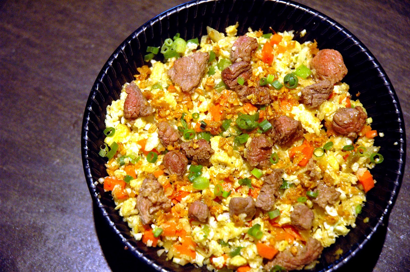 ...like the unique Cauliflower Chahan (P 195), with shredded cauliflower instead of rice, topped with beef and mixed vegetables. And since it isn't rice, go ahead and enjoy a second bowl without the guilt. The texture and mouth feel is exactly like rice, with just a hint of sweetness from the cauliflower. And the best part? No added carbs. Another personal favorite.