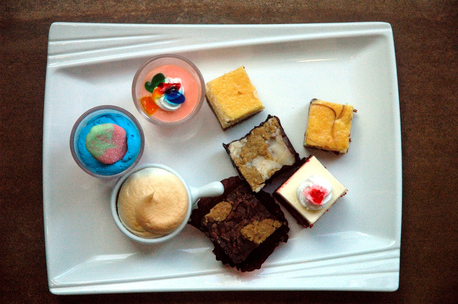 or indulge yourself at the Yogurt Machine and swirl your own bowl of tart, smooth, and creamy Yogurt, topped with chocolate and candy sprinkles. Other selections include fresh fruits in season, as well as an array of intricate dessert shooters.