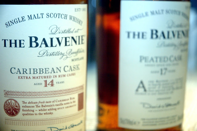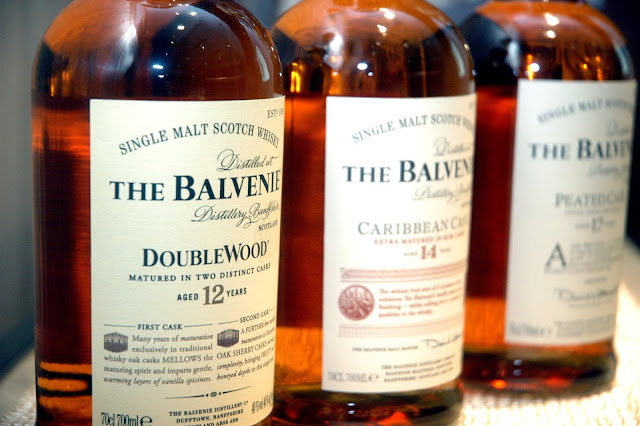 Neil Strachan began the intimate tasting session of The Balvenie with a brief overview and history of the famed distillery, and the tedious process of distilling one of Scotland's finest. Owned and managed by the same independent family company for five generations, The Balvenie Distillery remains totally committed and dedicated to the traditions, care, and craftsmanship in the fine art of malt whiskies. Today, The Balvenie Distillery remains the only distillery that grows its own barley in a thousand-acre farm known as The Balvenie Mains. The Balvenie Distillery still malts in its own traditional floor maltings, coopers continue to tend all the casks, and a coppersmith tends the stills. All under the watchful eyes of its legendary in-house malt master, David Stewart, the longest-serving Malt Master in the industry. This commitment to excellence and tradition is best experienced in The Balvenie Range of award-winning single malts, which includes The Balvenie DoubleWood 12 Year Old, The Balvenie Single Barrel 15 Year Old, The Balvenie DoubleWood 17 Year Old, The Balvenie PortWood 21 Year Old, and The Balvenie Thirty, a limited rare edition.