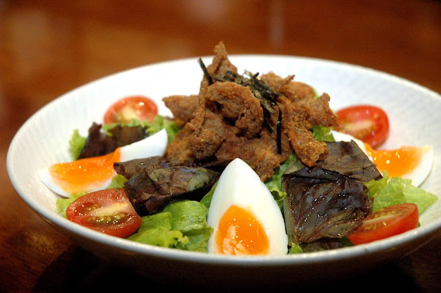 Ippudo's new Chicken Wings (P 255), glazed chicken wings with white sesame served with a side of refreshing mixed green salad, delivers both familiar and comforting flavors, with tender and juicy chicken with its mildly crisp outer layer draped in a sweet glaze with robust hints of pepper. Both texture and flavor pair well with the richness of the ramen, and the side of salad completes the flavors.