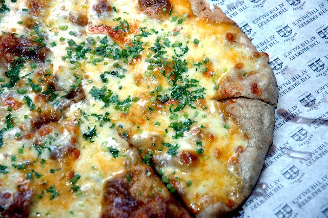 A pizza and a beer. Another of those classic and comforting pairings. The Microbrewery Beer Cheese Pizza (P 520), a crisp and rustic crust made from spent grains topped with homemade beer cheese sauce, mozzarella, Parmesan, Gruyere, and caramelized onions is great with either the IPA or the Wheat Beer. Other pizza selections at The Brewery include Chicken Chipotle Pizza, Sisig Pizza, Bacon Cheeseburger Pizza, Vegetarian Pizza, All Meat Pizza, Classic Pepperoni, Roast Tomato Margerita, and Ham, Spinach and Mushroom Pizza.