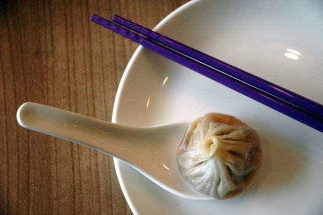 Laid on a spoon, nibble gently to release the steam and the piping hot broth, and as it cools, finish it off from the spoon. The flavors of the Hainanese Chicken Xiao Long Bao are rich yet mild and delicate, with just a hint of ginger. It's comfortingly familiar, yet new and different in its soup dumpling execution. The richness of the Hainanese Chicken pairs well with the xiao long bao for a celebratory Singaporean flavor experience.