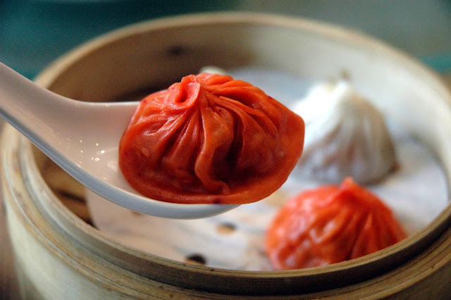 After the Hainanese Chicken Xiao Long Bao, go for the brightly colored Chili Crab Xiao Long Bao. The Chili Crab Xiao Long Bao's vibrant colors are as intense as its flavors, capturing one of Singapore's iconic dishes and recreating it in a soup dumpling.