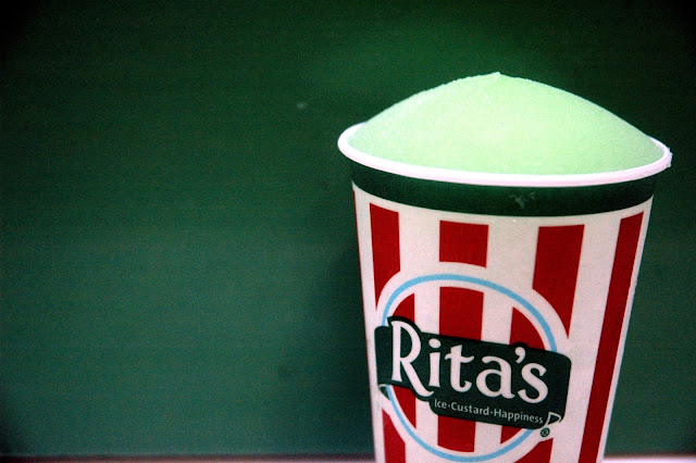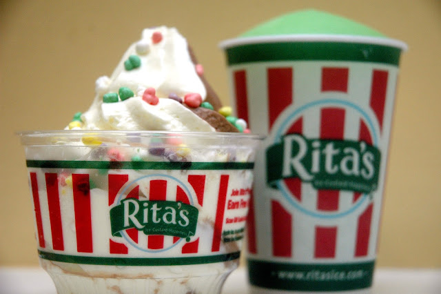 Inside the Greenhills branch of Rita's Italian Ice, the sign (L) says it all. Nothing like ice and custard to bring both a smile and happiness even on a cloudy day. With so many options, and infinite combinations, Rita's Italian Ice is always the brightest spot on a rainy day. Like they always say at Rita's Italian Ice, "Get Rita's, get happy."