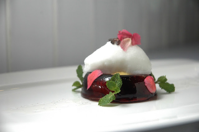 ...the Strawberry Pomegranate Agar (P 400), with coconut lychee sorbet and passionfruit cream...