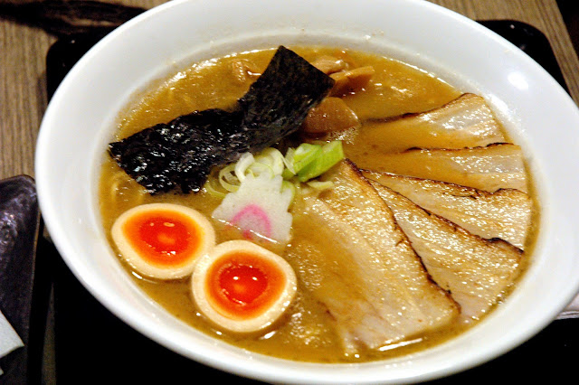 Topped with thick, tender slices of roast pork, vegetables and marutoku or marinated soft-boiled eggs, the combination of flavors and textures come alive in every spoonful, or slurp, And the noodles remain the highlight of the dish. Smooth and firm, nothing like fresh noodles.