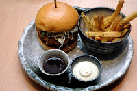 The new Ebi Katsu Burger (P 420), with crunchy Ebi Katsu filled with chunks of black tiger prawns, topped with shredded cabbage, shiso leaves, Japanese pickles, and caramelized onion jam drizzled with a creamy and spicy aioli in a toasted brioche bun, is another refreshing option for seafood lovers. The fresh, plump and chunky black tiger prawns "snap" with every bite, contrasting with the crisp outer layer of thin breading, and perfectly complemented by the creamy and mildly spicy aioli.