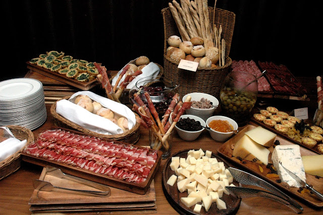 A sumptuous spread of assorted cured meats are laid out at the antipasti buffet...