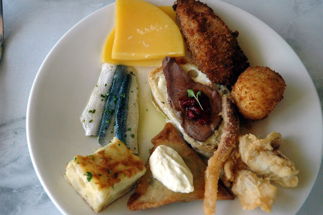 ...and Boquerones, thinly-sliced fresh anchovies marinated in vinegar, extra virgin olive oil, garlic and parsley. Pure, fresh, and clean flavors, and you'll want to go for seconds.
