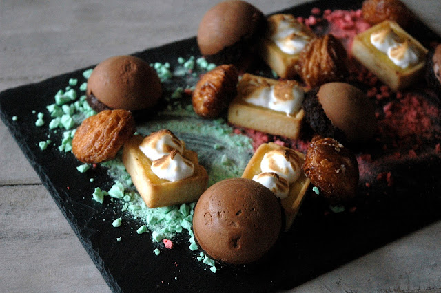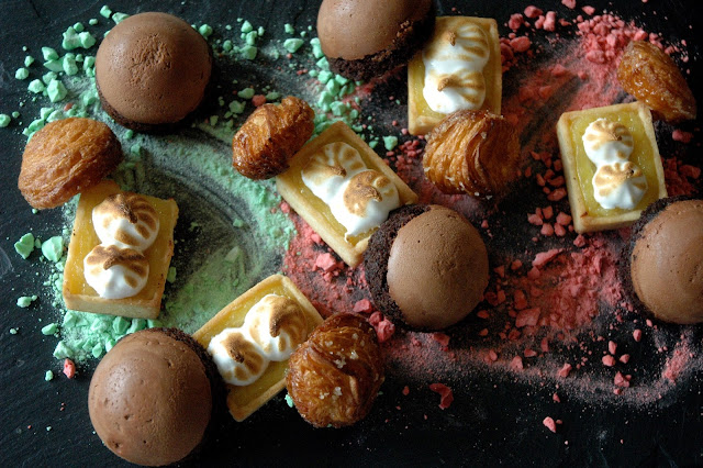 For dessert, a selection of Brasserie Cicou's signature pastries were served, including Lemon Meringue Tartelette, Mousse au Chocolat, and Kouignette, a bite-sized version of their popular Kouign Amann.