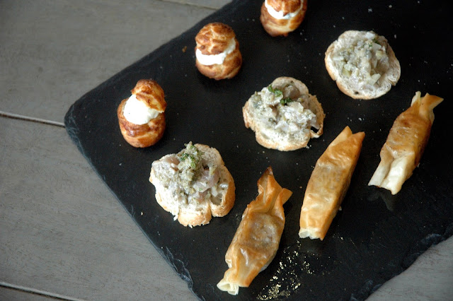 After a few more rounds of Kir, Brasserie Cicou's signature starters were served, the Bonbon of Lamb Shoulder Tajine-Style, Gougere of Herbed Goat Cheese, and Tuna Tartare on Toasted Cicou Bread, elegantly plated and presented in the classic Brasserie Cicou style (for more on Brasserie Cicou's authentic and rustic French cuisine, check out my previous post here, and the Thanksgiving Lunch last year here). Each starter was perfectly executed, delivering a richness in flavor Brasserie Cicou has long been known for, with each and every bite. Brasserie Cicou's young culinary team headed by Executive Chef Jill Osias continued to impress, as the rest of the dishes were served...