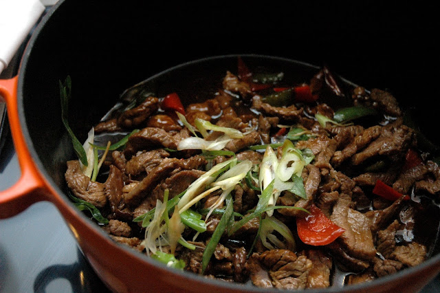 ...tender Beef in Oyster Sauce with peppers and leeks...