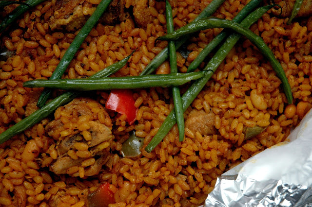 Arrozeria's signature Paella Valenciana (P 1,130-15"/P 1,720-18"/P 2,190-21"), with chicken, rosemary, green and white beans on soft and fluffy tinawon heirloom rice, is boxed in a large flat carton and delicately wrapped in paper and foil to keep it moist and fresh. It's the classic and comfortingly familiar paella, prepared in the traditional style that Chef Chele Gonzalez grew up with, with each spoonful releasing a burst of rich flavors. The rice absorbs all the flavors of the different ingredients, with the fresh French beans adding its distinct notes and "snap" to the dish. Arrozeria offers a wide variety of paella, including De Verduras with seasonal vegetables, Abanda with boneless fish and seafood, Del Sonorito with boneless chicken and peeled seafood, Pato y Setas with duck and mushrooms, and Rossejat with beef shank, pork knuckles, chorizo and chickpeas, as well as different paella styles like Meloso or saucy paellas, Fideua with thin noodles instead of rice, creamy Risottos and Arroz Gratinado or gratin.