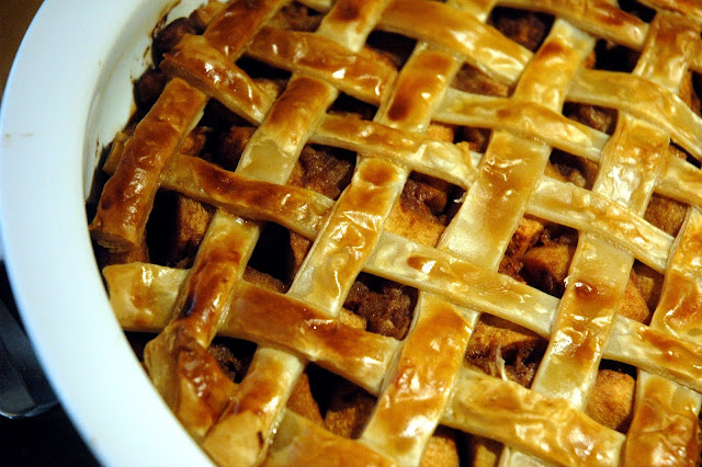 ...a rustic and comforting Apple Pie capped with an intricate lattice-like weave of pastry strips ...