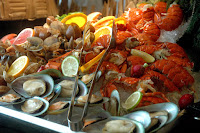 As the charcoal was prepped and laid on the outdoor grills, the final touches were also made on the lavish brunch buffet spread inside the elegant interiors of Spectrum. The always impressive Sushi and Sashimi Station (L) is always a favorite, as a tray of freshly steamed lobsters (R) arrived at the Seafood Station (R).