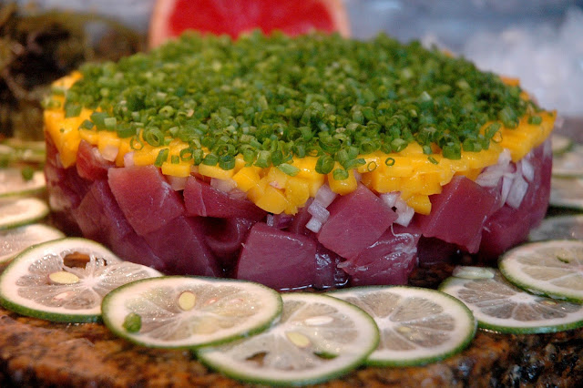Also at the Seafood Station, you can find fresh tuna layered with mangoes and spring onions...