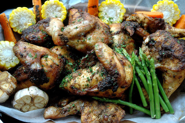 ...a rustic Country Farm Chicken Roast with grilled vegetables...