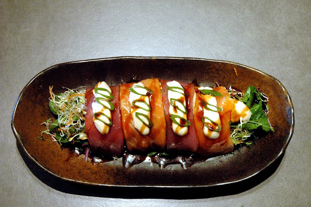 Seafood or salad? Have both with Yumi's Maguro Sake Arugula Salad (P 345), with tuna and salmon on arugula, alfalfa, red radish and peanut dressing. The premium tuna and salmon deliver fresh and clean flavors with just a whisper of heat from the spices, rounded out by the crisp crunch of the arugula, alfalfa, and red radish drizzled with a nutty peanut dressing for a flavorful punch, and yet another light, healthy and tasty option at Yumi. Its a salad with a unique Japanese twist, and this one tastes as good as it looks. And it's healthy too.