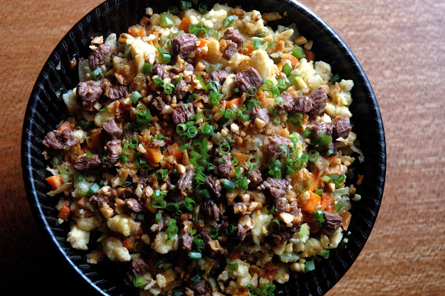 ...go for a bowl of Cauliflower Chahan (P 229), the inventive and unique blend of cauliflower with mixed vegetables. Finely grated cauliflower is used as the base for this dish, and prepared in the traditional chahan style with vegetables. The fresh cauliflower delivers mildly sweeter notes than the familiar chahan rice, seamlessly blending with the distinct notes of the mixed vegetables. And the best part, it's a vegetable dish that tastes just as good or even better than the usual chahan, without the extra carbs. And the guilt. So go have another bowl and enjoy. At Yumi Japanese Restaurant.
