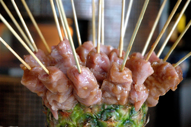 At the Center Station, you'll find Pork Skewers marinated in rich Thai spices and seasonings...