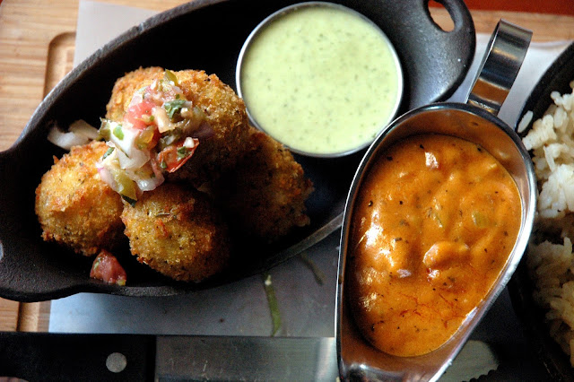 The Golden Chipotle Cheeseballs are perfectly crisp, filled with melted cheese delivering both flavor and texture with each bite, pairing well with the creamy dipping sauce.