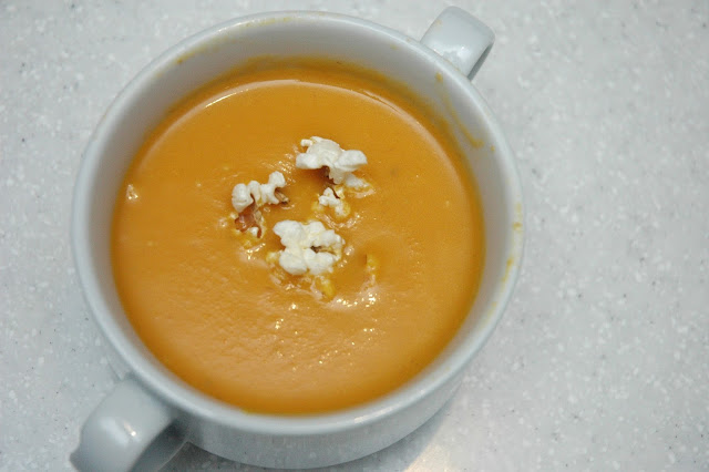I start with Executive Chef Decker Gokioco's hearty and comforting Carrot & Fennel Soup topped with Popcorn...