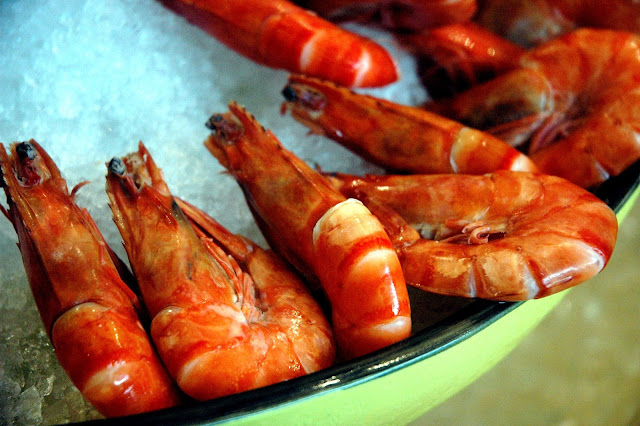 ...and plump prawns on ice. Fresh oysters were also available, along with a wide variety of sushi and sashimi to satisfy any serious craving for seafood.