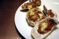 Then, you're just about ready for the fresh Oysters laid on a mound of ice. Have it fresh, baked, or both, it's your call. Paired with a glass of wine...perfect. And yes, you can have as much as you want.