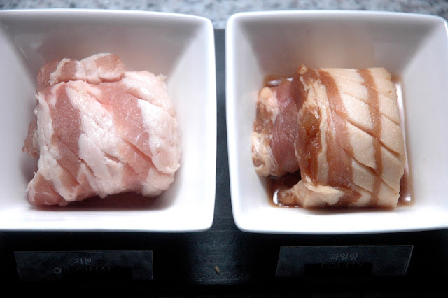 The last pair includes pork belly marinated in Doenjang (L), a Korean miso; and the spicy Chili Bean variant (R), for that extra heat and kick in flavor. Each flavor is unique and distinct, and if you're going for the 6-Flavor Samgyupsal Set, it's best to start with the Original, followed by the Fruity, Wine, Soy-Garlic, Doenjang, and finally the Chili Bean pork belly. From the Original to the Chili Bean variant, the distinct flavors become increasingly bolder with intense and sharper notes. Why settle for pork belly marinated in one style when you can have six variants on your table?