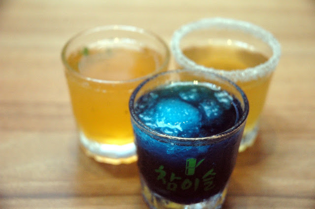 If you're feeling adventurous, go for Soban K-Town Grill's soothing cocktails, available by the glass or carafe, like the Black Dragon (P 120 Glass/P 400 Carafe, top left), a black tea based cocktail; the Seouljito (P 120 Glass/P 400 Carafe, top right), a refreshing cocktail with citrus and mint; and the Galaxy (P 120 Glass/P 400 Carafe, middle), a frozen slushie cocktail, each one guaranteed to get you in the K-Town groove.