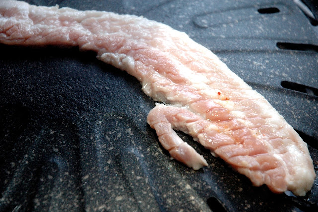 It only takes a few minutes to grill the marinated pork belly...