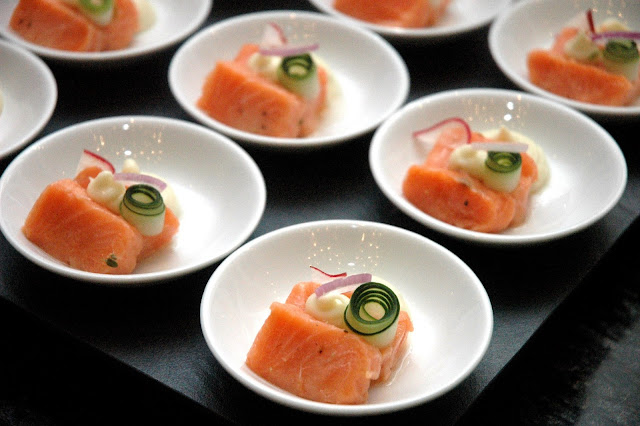 ...Earl Grey Deveron Salmon Confit with Crushed Lemon Potato...