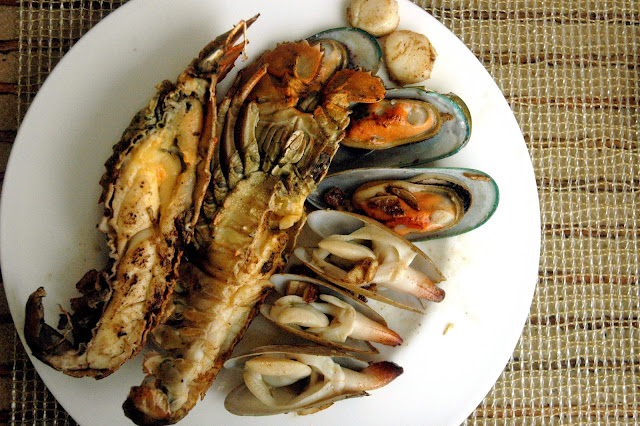 Lobster, Mussels, Elephant Clams, and Scallops poached in butter and garlic, just perfect. The fresh briny sweetness of the seafood come through, followed by the rich buttery notes and nutty garlic hint to complete the flavors.