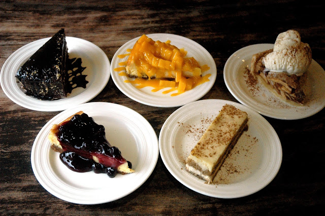 Cap your comforting feast at Mama Lou's with one of their signature dessert selections, like the (clockwise from top left) rich and moist Chocolate Cake (P 160), made with Belgian chocolate and assorted nuts; Mama Lou's Cheesecake (P 180), a creamy and velvety smooth cheesecake topped with sweet mangoes; Apple Pie (P 160), a deep-dish apple pie served warm topped with ice cream; Mama Lou's Cheesecake (P 180) topped with blueberries; and Italian Tiramisu (P 160), an indulgent layered dessert with biscuits, whipped cream cheese, espresso, and Baileys. Now take me back home...to Mama Lou's.