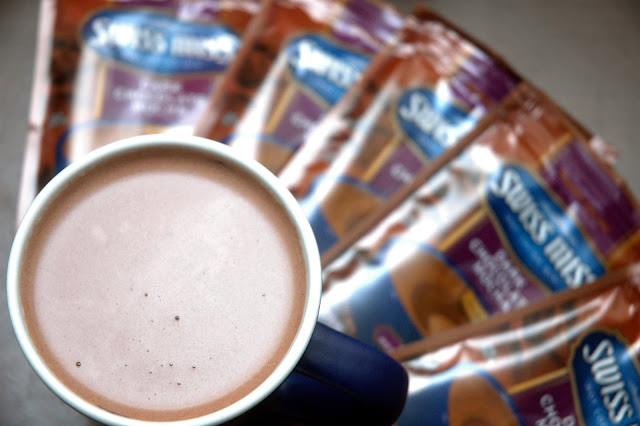 And I get first dibs. Packed in an elegant box, my package from Swiss Miss included a cool Swiss Miss cup and six sachets of the new Swiss Miss Dark Chocolate Mocha. Time to get the water boiling...