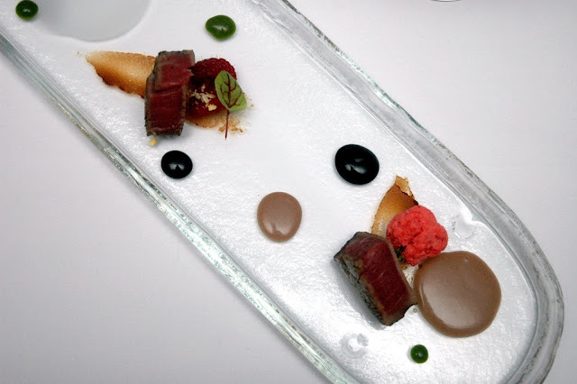 Chef Daniel Negreira's equally elegant Spring Expression was then served next, a beautifully plated dish with a delicate Duck Liver Sandwich infused with Cocoa, Pine Jam, and Goji Berry with Bee Pollen. The medley of complex yet balanced flavors come together in another memorable dish, with the richness of the duck liver tempered by the tart notes of the goji berry and pine jam, capped by the subtle sweetness of the cocoa and bee pollen. The clean, fresh flavors of spring, the inspiration behind the dish, is perfectly captured and recreated in this dish, finished by the crisp notes of Champagne Ruinart Blanc de Blancs Magnum to cleanse the palate.