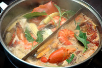 ...and prawns. The key to a flavorful hot pot is building layers of flavors from the different ingredients, simmered to a boil right on your table.