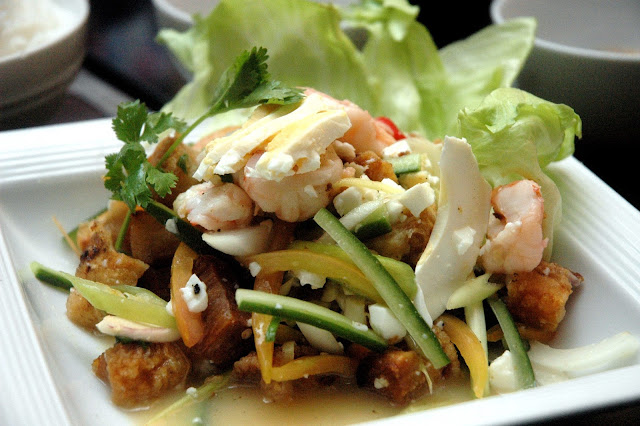 After adding the cooked rice to the broth, you can try some of COCA's signature dishes like their refreshing salads as the hot pot broth with rice simmers...